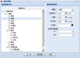 左侧的内容选择与试卷设计中使用方法相同。