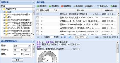 在主菜单上选择“试题”,再从新出现的子菜单上选择“试题检索”→选择专业课程进入试题检索页面。