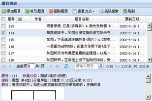 设置检索条件,再按下查询按钮,右侧的题目列表中会列出查询结果。